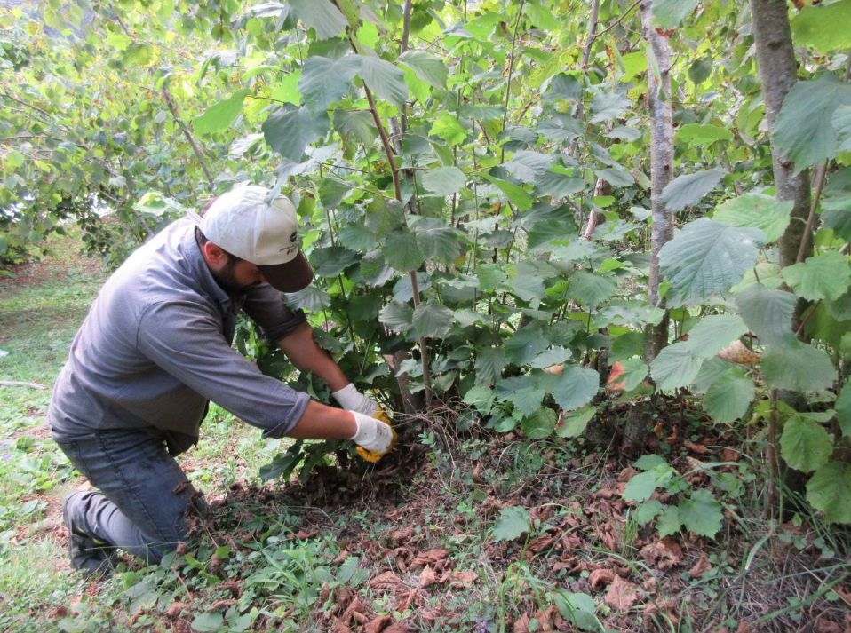 - After harvest, hazelnut, husk (shell), branch, and leaf debris remaining on the ground should be collected and burned or composted.