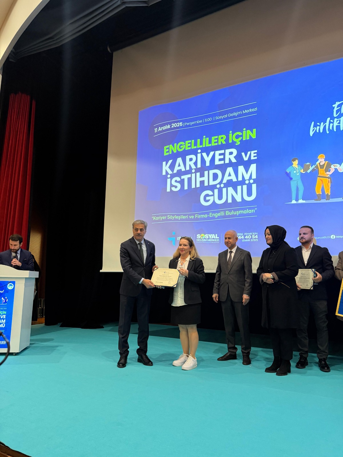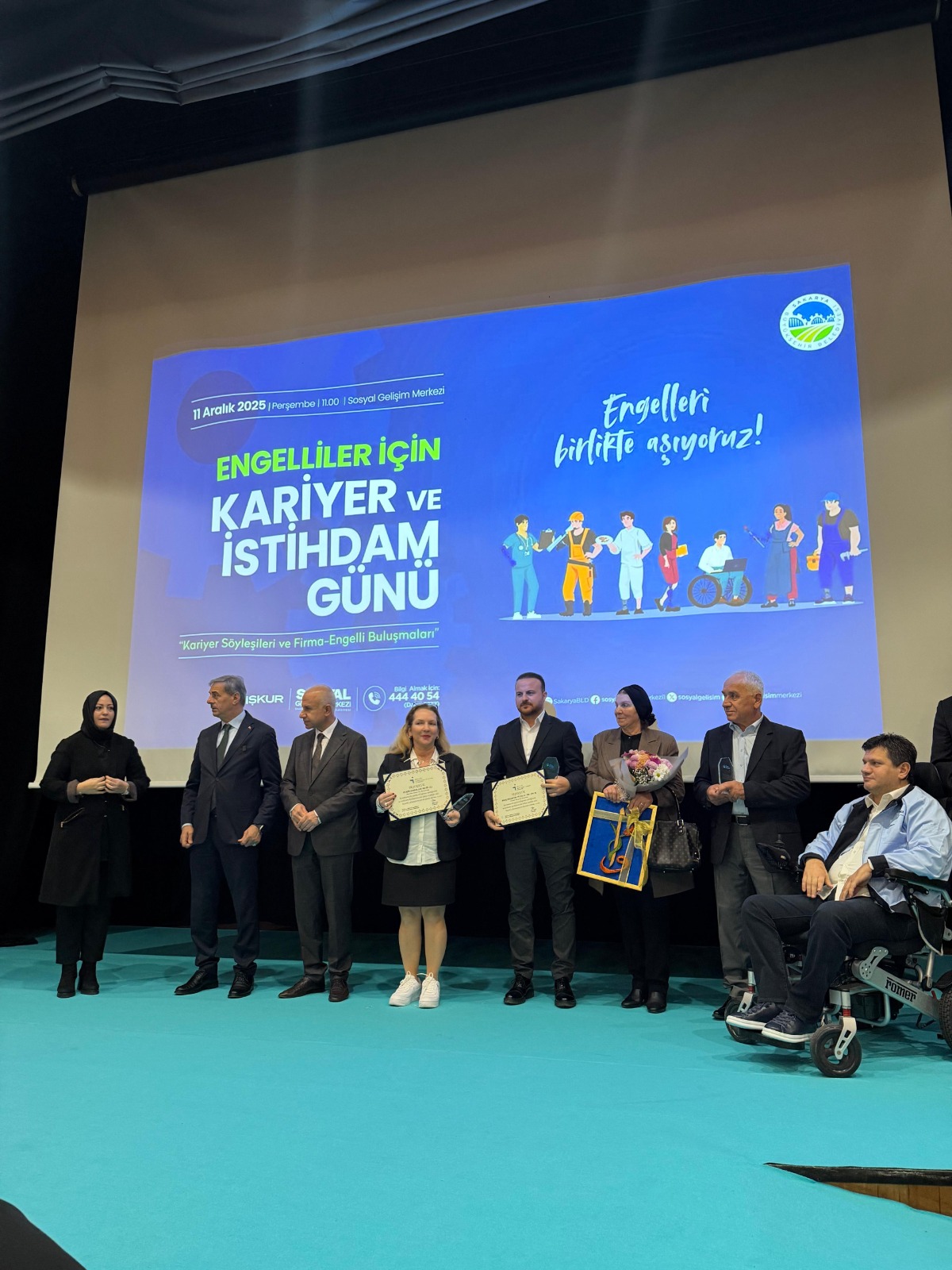 In this context, on Thursday, December 11, 2025, at 11:00 AM, a certificate of appreciation was presented to our company at an employment-focused event held at the Sakarya Metropolitan Municipality Social Development Center, for our consistent fulfillment of our obligation to employ disabled individuals. The certificate was presented by the Mayor of Sakarya Metropolitan Municipality, Mr. Yusuf Alemdar. Representing our company at the event were: