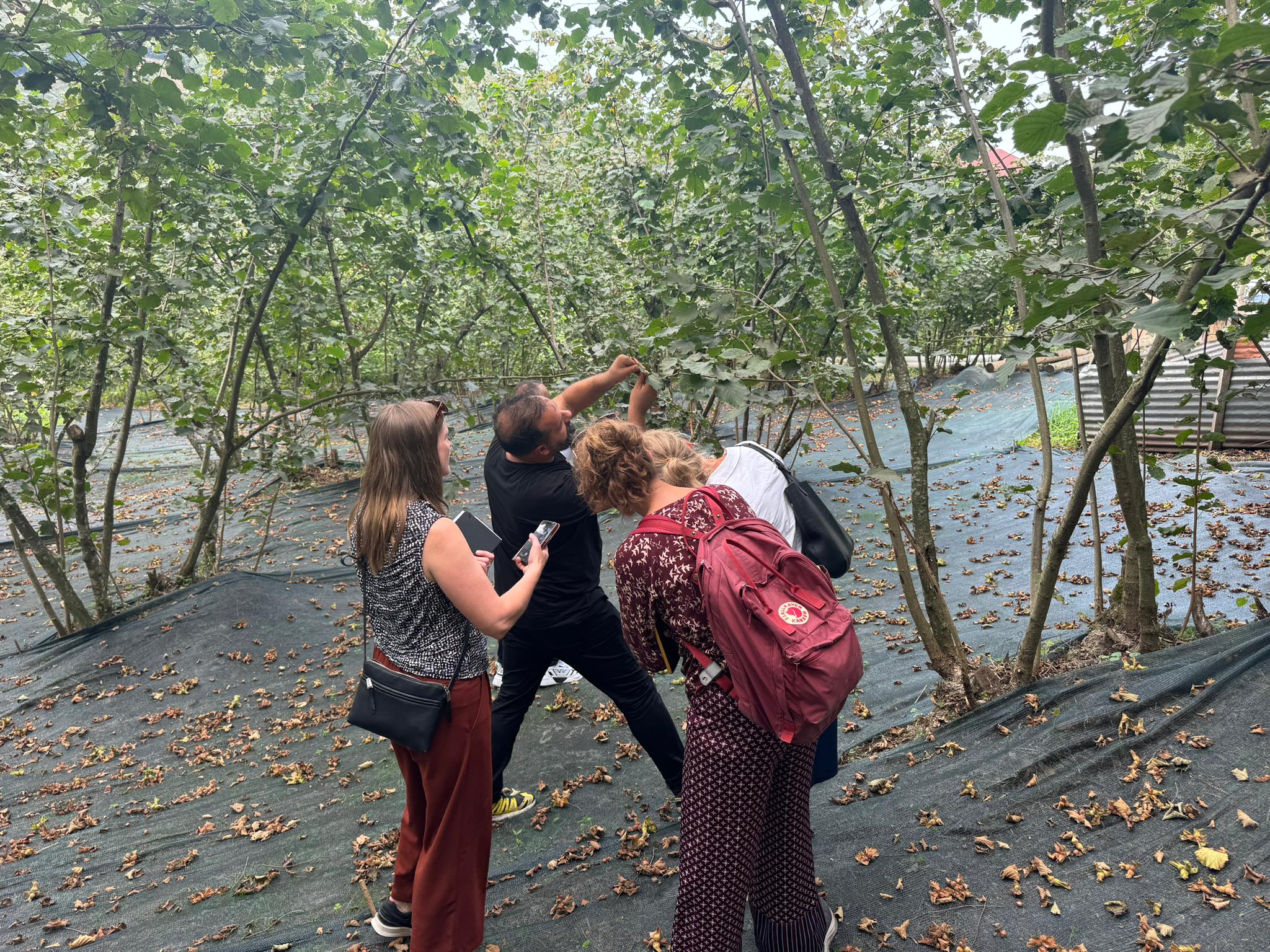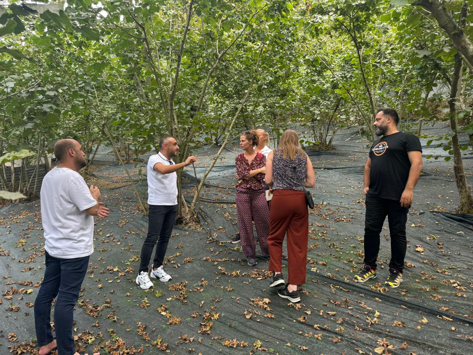 After the visit, they visited the classes and had the opportunity to determine which courses were being taught on site. After the school visit, they visited sample gardens and producer lands carried out within the scope of sustainable practices and had the opportunity to see the net laying and hazelnut collection practices on site.