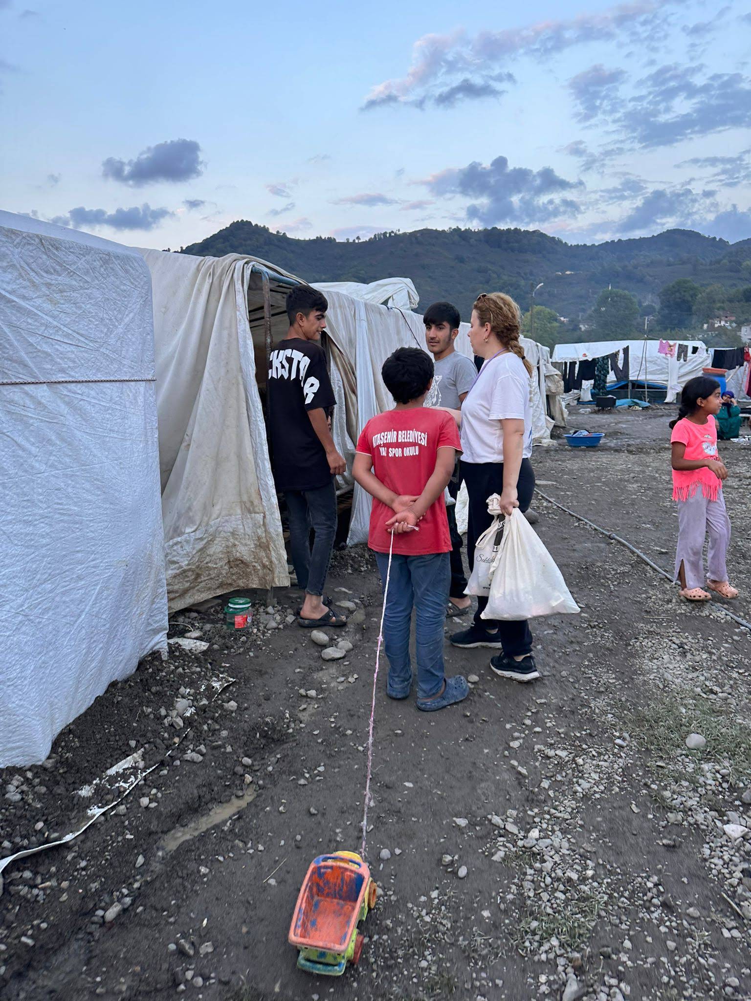 The aim of this visit is to improve the living conditions of seasonal agricultural workers and ensure that they work in a healthy environment. Hygiene packages, soap, disinfectant, masks and other basic hygiene products were distributed to families staying in tents while family training was provided. During the training, families were informed about personal hygiene, tent cleaning and food hygiene.